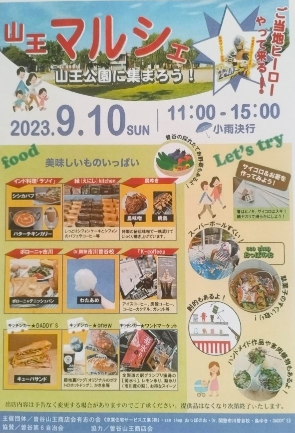 | 主催 | 【曽谷山王商店会有志の会】 eco shop おっぽのお Dr.関塾 市川曽谷校 鳥ゆき DADDY'S |