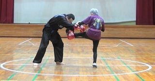 基礎体力作りに重点を置いてます。一時間は、準備体操・ストレッチ・歩行走行・筋力トレーニングを行います。80歳で持病があっても病を克服して突いて蹴って前進し、澄んだ瞳で真っすぐ前を見てます。それぞれの人生、自分との戦い、どんなことがあっても一途に頑張って生き抜いて行くだけ。自分の強さは自分の努力でしか得られない。ミットを突いたり蹴ったりします。防御技術を練習して、相互に攻防を展開できるようにします。安全最優先でやります。グローブを着用してやります。